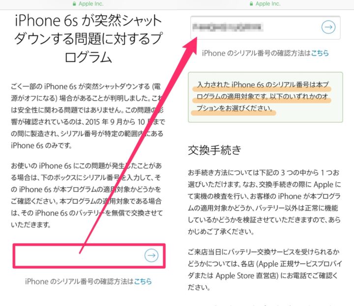 【iPhone 6sが突然シャットダウンする問題に対するプログラム】から先程のシリアル番号を入力してみて下さい。