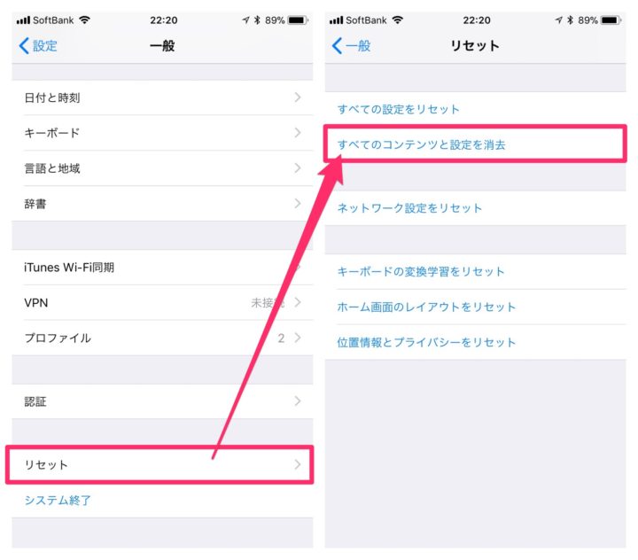 これから他社に乗り換え予定の方や格安SIMでの運用を検討中の場合など、まだ手元に他社SIMがない場合上記の方法が使えないので、今回ここではAppleで記載のあったiPhoneを一度初期化することによりSIMロックを解除する方法を説明していきます。