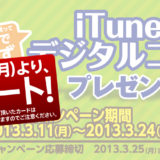 3,000円のiTunesCard購入で500円分、5,000円で1,000円分、10,000円で2,000円分のiTunesデジタルコードが必ずプレゼントされます!