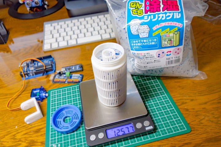 シリカゲルは小さめの洗濯ネットやお茶用のパックなどに入れても良かったのですが、折角なので3Dプリンタで入れ物を出力させました。