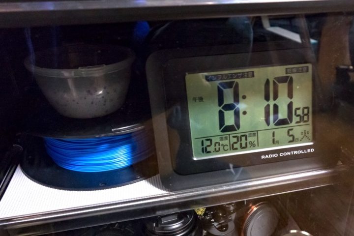 3Dプリンタを購入前からフィラメントの保管には湿度を管理して行うといった話はよく聞いており、私はカメラ用の防湿庫を1台持っていることからここに保管しようと考えていました。