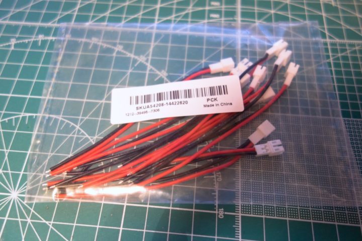 オス側のXT30プラグ(機体に付ける方)、こちらはBanggoodさんで購入したケーブル付きのXT30プラグ。