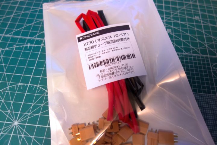 届くのに少々時間がかかるのでストック用など早めに注文するようにしていますが、AmazonでもXT30プラグとヒートシュリンクがセットになった便利なものが売られていたので今回はこちらを使用しました。