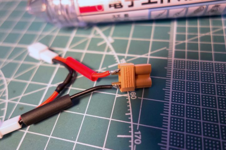 1Sバッテリー×2本(JST-PH2.0)→XT30プラグ(2Sバッテリー)への変換コネクタを作ってみる!