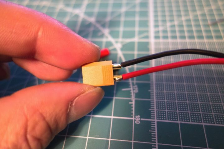 先程作成したケーブルをXT30プラグのメス側に半田付けします。