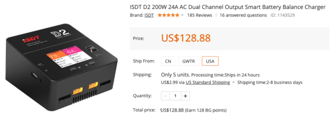 そして、いろいろ迷って購入したバランス充電器がこのiSDT D2充電器。