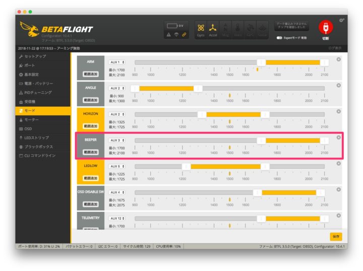Betaflightでブザー&LEDの設定!