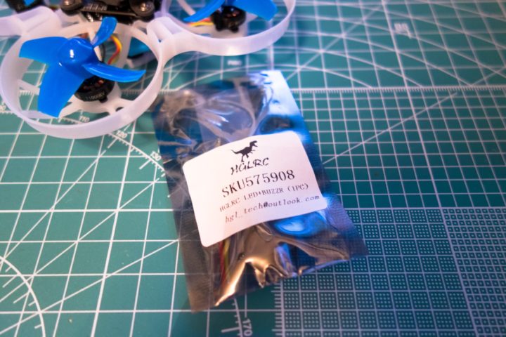ブザー単体をFC等に固定して付けてやることもできますが、今回はこのスリットを生かしブザーとLEDが付いている『HGLRC Super Mini WS2812 Colorful LED Active Alarm Buzzer』を取り付けてみることにしました。