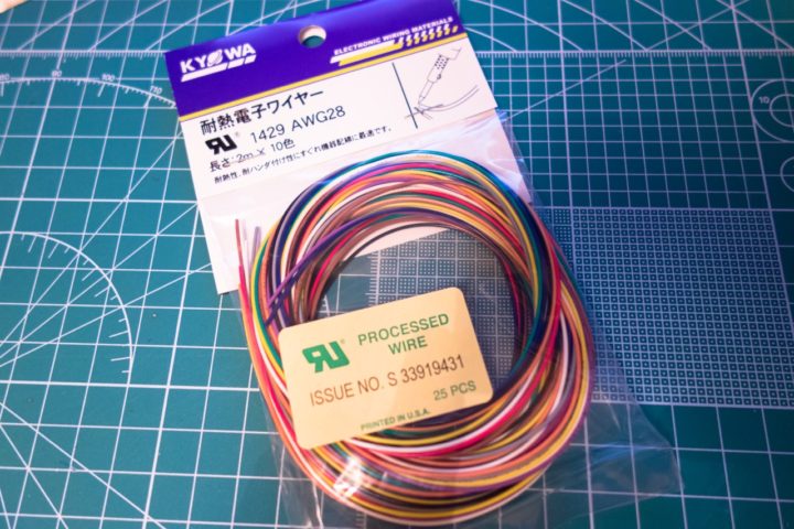 今回使用したケーブルはAWG28の耐熱ケーブルを使用、Amazonで購入したのですが10色各2m入って700円ほどで購入できます。