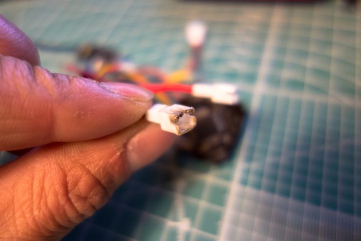 この2SのFCは、FC側のピンをESC側のプラグに刺すことにより接続するタイプですが、これがズレて刺されているとこのような状態になるようです!