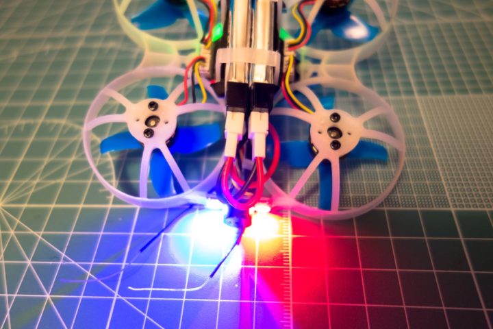 赤や青の他、数色出すことができるのでカラフルでカッコよくできますし、他人の機体を含め数台で飛ばす際に色分けでき良さそうですね。
