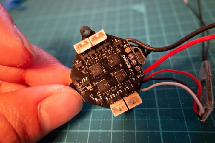 1Sフープとは全く別次元のこのBeta75Xくんですが、野外で飛ばす際のロスト回避のためブザーとLEDを取り付けてみました。