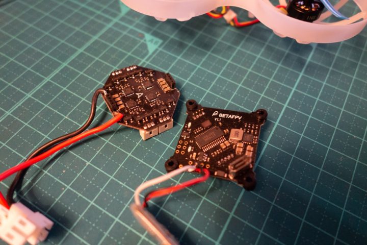 さらにのぞいていくと、BETAFPVから新しく発売された2S用F4フライトコントローラー『F4 2S Brushless Flight Controller』とESCボードがあります。