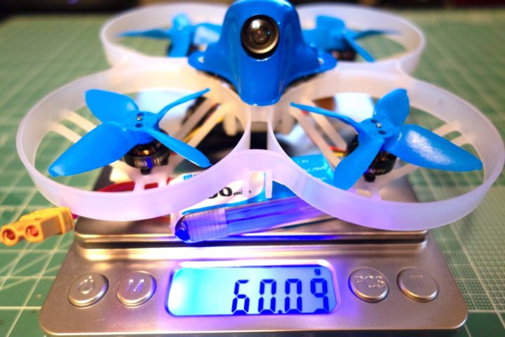 付属の2セル300mAhバッテリー込みでも約60gと85mmフレームの2セルWhoopとしては軽い方かと思います。