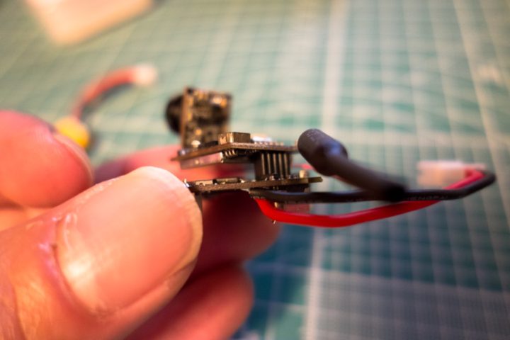 このフライトコントローラー、先に紹介したZ02カメラと非常に相性が良くケーブルでの接続が必要ない(FCとカメラをプラグで接続)ため、スッキリ収まります。