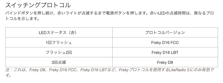 そしてFrsky版の方では、Frsky D8 or Frsky D16のモード切替なども出来るようになっているようです。