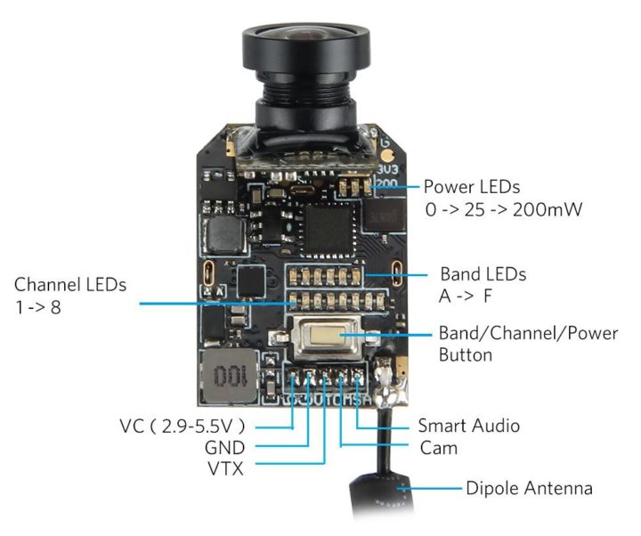 Smart Audio機能が追加され、送信出力も通常の25mW出力に加え200mWでの出力も可能となっています。