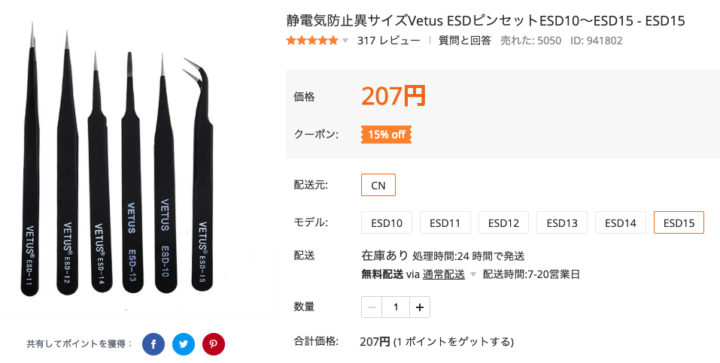 このE-Clipが非常に小さいため普通のピンセットなどではなかなか外せないので、私はこのような精密ピンセットを使って外しています。(これ専用の工具とかあればいいのですが・・・)