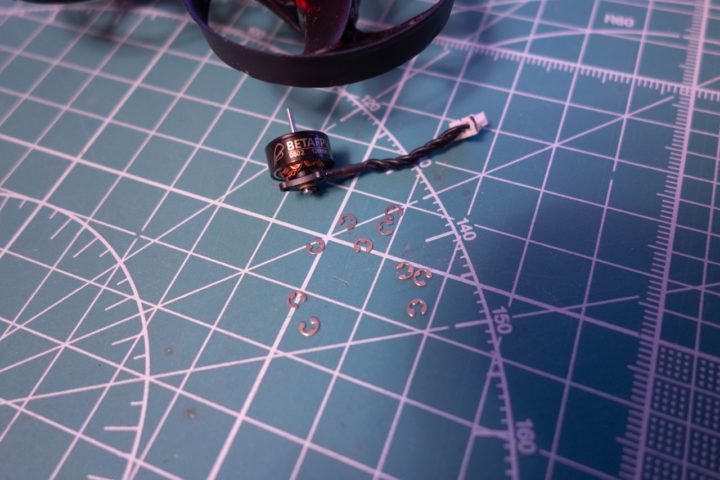 ただWhoopで使われているブラシレスモーターといえば06○○系や07○○系、11○○系などがありますが、このくらいのサイズのモーターで使われているE-Clipは非常に小さいので分解の際は紛失に注意しないといけません!