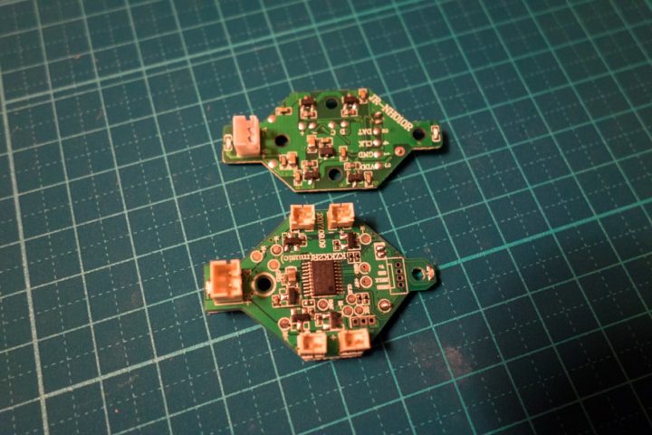 E010のFC(フライトコントローラー)には端子がなく、モーターのケーブルを直でハンダ付けするタイプ、またE011のFCの場合はプラグが付いているのでプラグを差し込むだけで完了します。