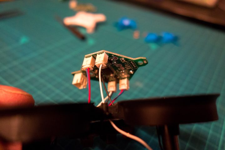 まずは先ほど取り付けたモーターのケーブルをFCに繋げます。