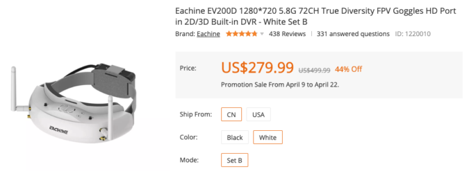 先日、はじめて買った愛用のFPVゴーグルEachine EV100をBanggoodさんのご好意でEachine EV200Dへとアップグレードすることができました。