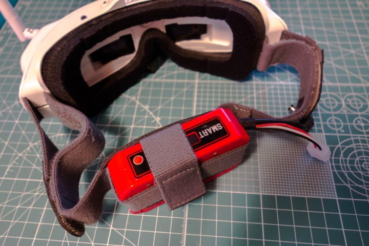 FuriousFPV Smart Power Caseは、一般的なヘッドストラップでよくある側面にバッテリーを付けるタイプに対応しておりケーブルが短くなっています。