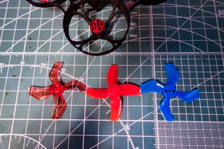 写真の青色ペラでは標準フレームでも問題ないのですが、透明のペラは少しサイズが大きいようで標準フレームでは使えません!