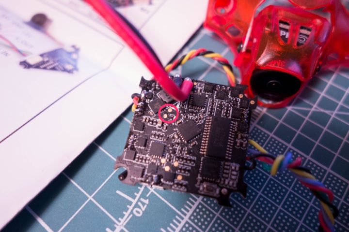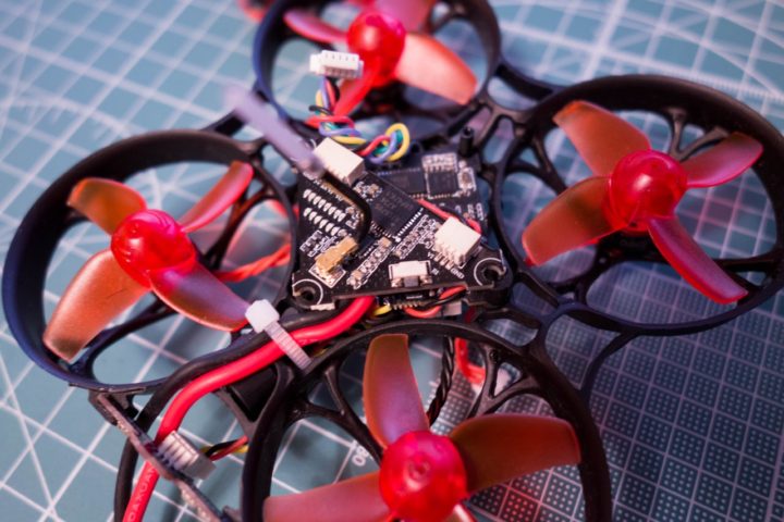 キャノピー内はWhoop_VTXやCaddx EOS2カメラでスペースが限られるので今回はフレーム裏の後方に設置しました。