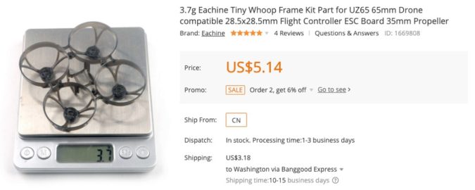 機体が到着し初飛行で『あっ!おもしろい!』となった機体だったのでスペアのペラとフレームをすぐに頼みましたが、今回Banggoodさんの計らいでチョッ速で別途スペアパーツをいろいろ送って頂いたので少しご紹介しておきます。