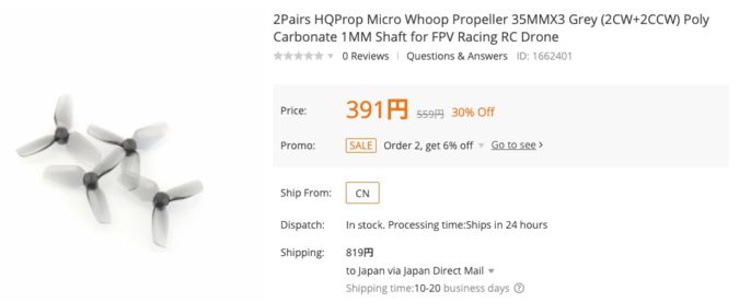 Banggoodさんでは赤色ペラが1組(4枚)なものと5組(20枚)のもの、そしてグレーペラも販売されています。