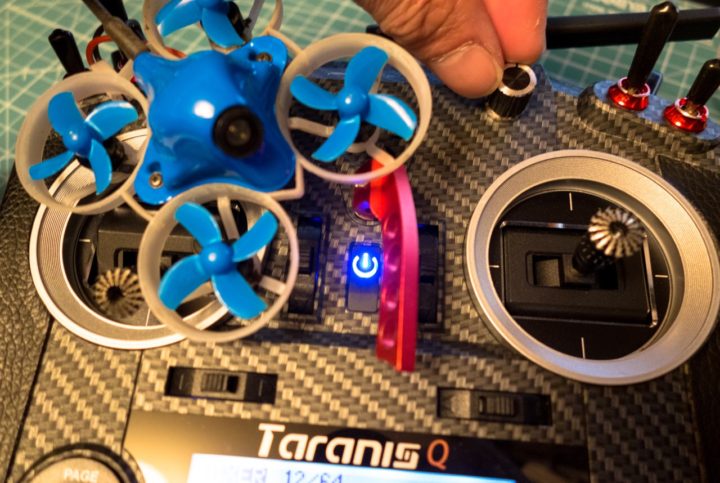 2セルWhoopでも部屋でビュンビュン飛ばそう!ポテンショメーターに最大スロットル値を可変で変えられる設定をしてみた!【Taranis】