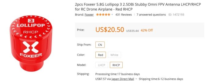 そしてFuriousFPV Stubby Airを試してブログで書いた時にコメント欄やお問い合わせで『Foxeer Lollipop 3っていうアンテナもいいよー』なんて話を頂きました。