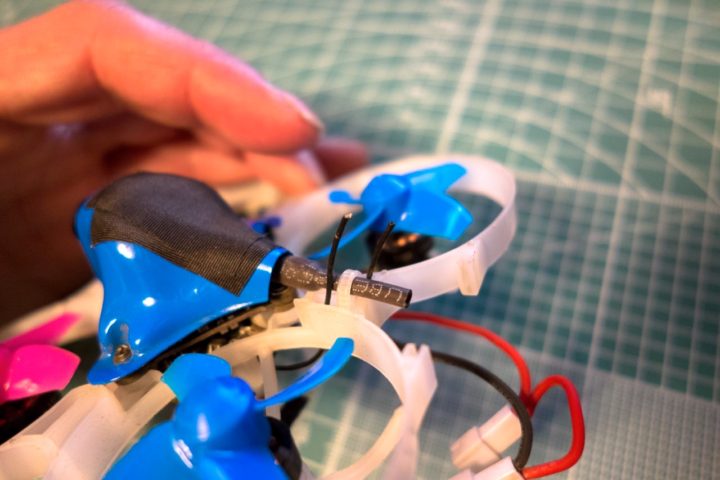 このxm +レシーバに付いている2本のおヒゲ(アンテナ)をいつもこんな感じで機体から出していますが、墜落等の衝撃やペラに接触しての切断などでBeta75Xくんのアンテナはいつの間にか通常の半分ほどの長さに!