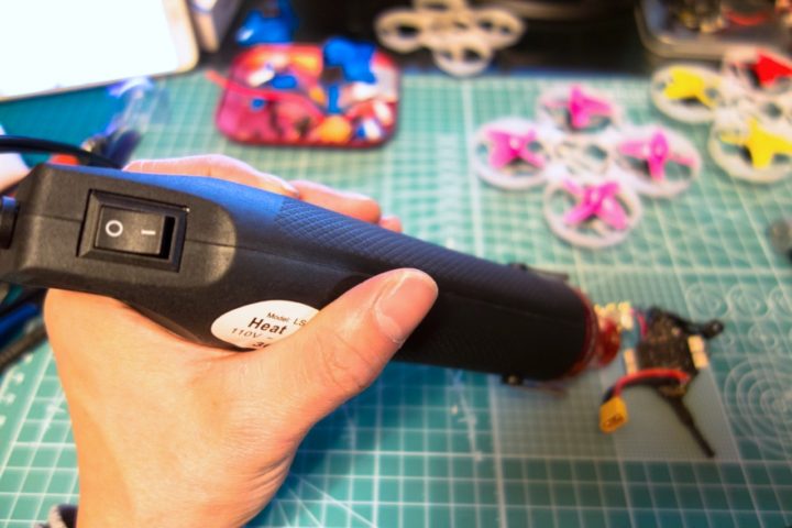 ドライヤーやライター等でも問題ないのですが、ピンポイントに熱風を当てることができ綺麗&均等に収縮させてやることができ大変便利です!