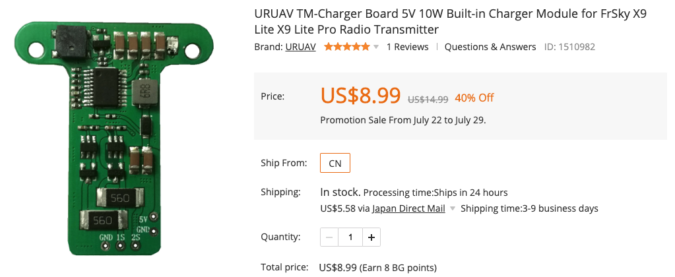 【Taranis X9 Lite Proカスタマイズ】USB充電モジュールを導入![URUAV TM-Charger Board 5V 10W Built-in Charger Module]