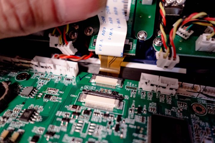 全てのコネクタ類(フィルムコネクタも)を外し、メインボードを取り外します。