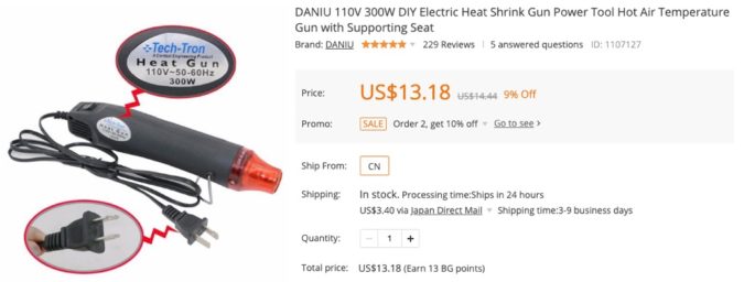 かなりお気に入りで愛用している便利なヒートガンとなります。
