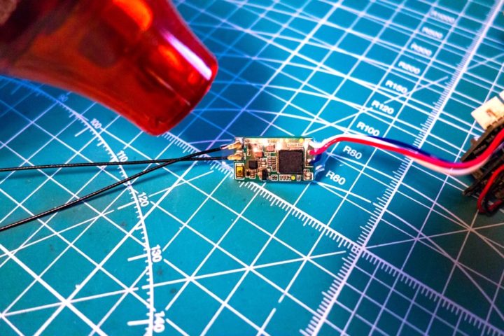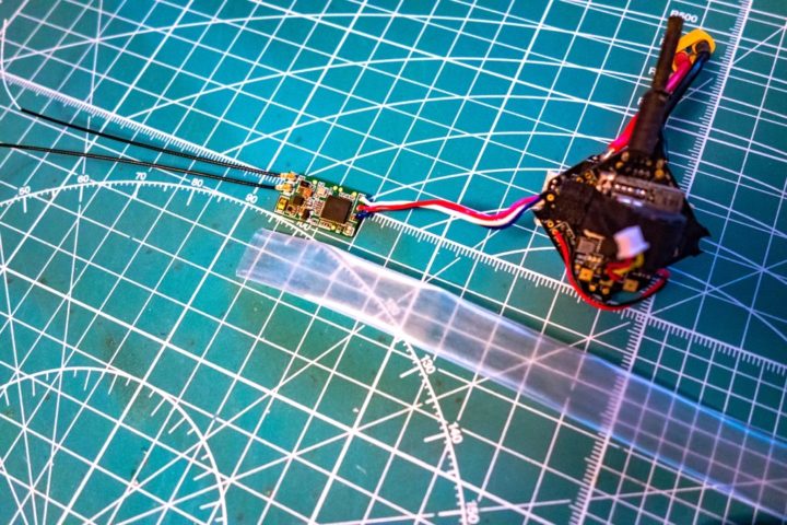 そしてアンテナの取付が完了すると受信機に保護用のシュリンクチューブを取り付けますがサイズは内径30mm(幅15mm)のものがジャストサイズとなるかと思います。