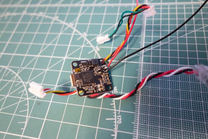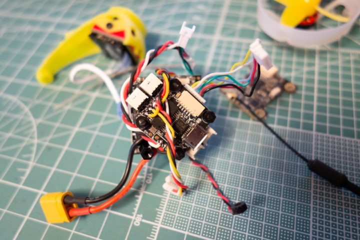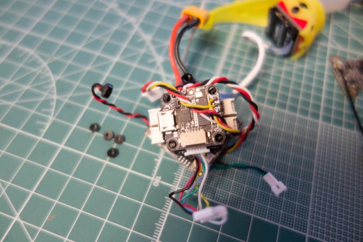タワー型に設置された基盤は上からフライトコントローラー(FC)、ESC、Caddx Turtle V2カメラ、そして一番底面にVTXという配置となっています。