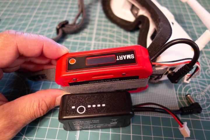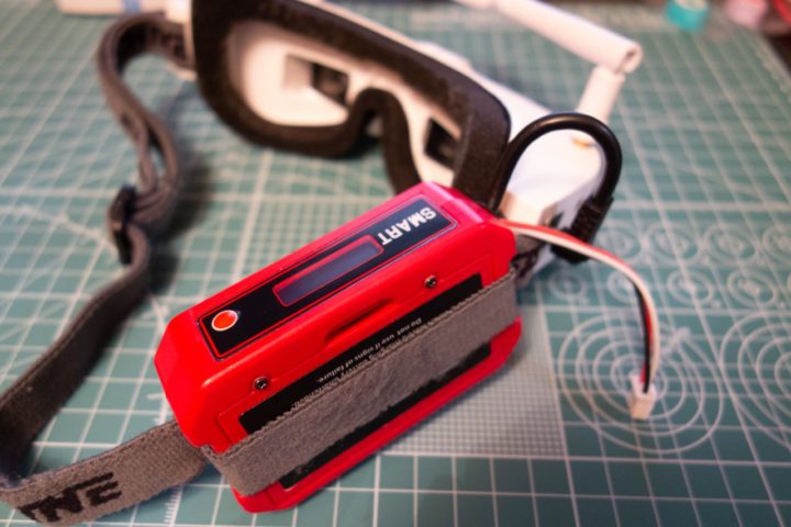バッテリー重量が増しているので標準の細いヘッドストラップよりも太いFatshark製のものに私は付け替えました。