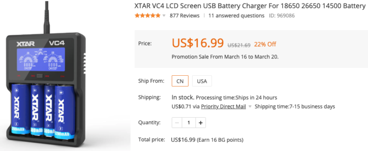 私はこちらの3400mAh 18650Bリチウムイオン電池を2本使用しています。
