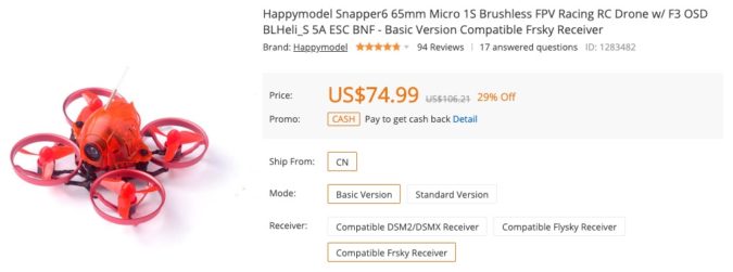 先日お仲間になった1セルブラシレスWhoop『Happymodel Snapper6』のBetaflight設定をやっていこうかと思います。