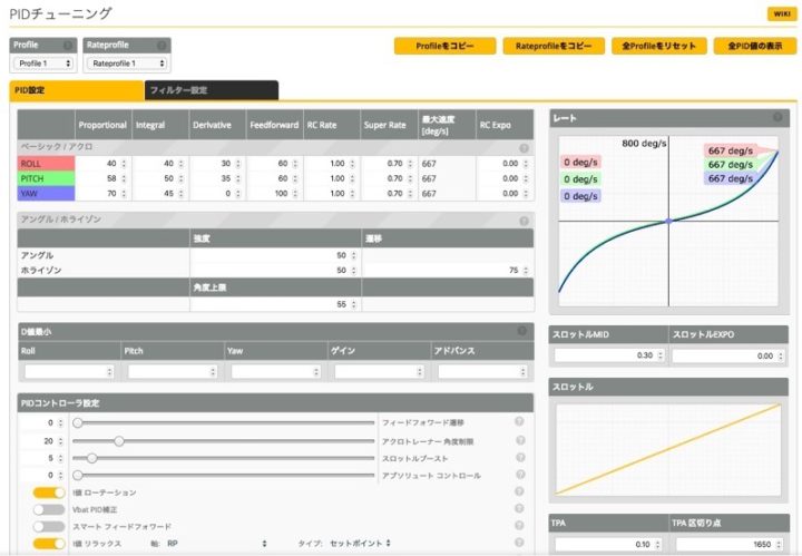 以上、Happymodel Snapper6でのBetafilght設定をやっていきました。
