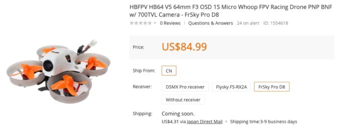標準で0802 25000KVモーター搭載の1セルブラシレスWhoop『HBFPV HB64 V5』、なかなかマニアックな機体です。