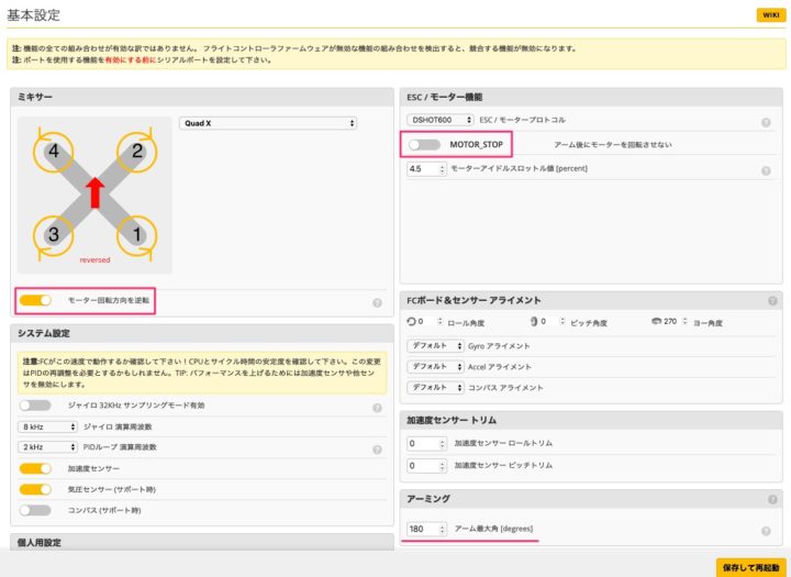 ここまでくればBetaflightでの最低限の設定は完了です!