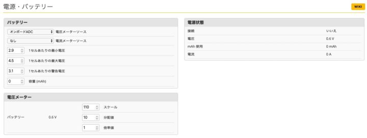 HVタイプのバッテリー使用がメインなので最大電圧の項目を4.3から4.5Vまで上げ、警告電圧を3.1Vまで下げました。