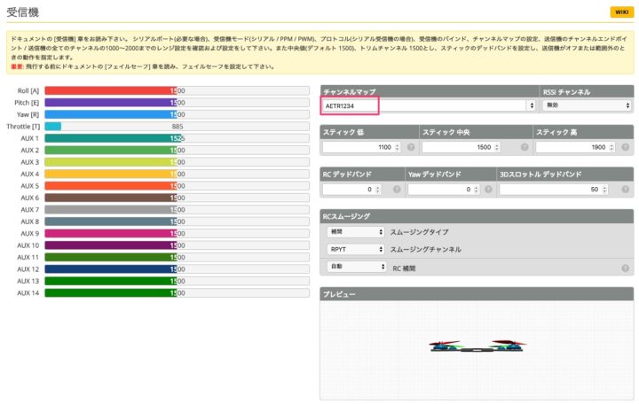 送信機とのバインドが完了したら次に【受信機】タブへと移ります。
