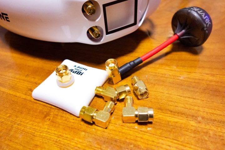 今回はEachine EV200Dで試してみたいと思いますが、EV200Dに標準で付いている受信機に取り付けるには「RP-SMA」タイプのアンテナが必要で、このような変換プラグが別途必要となってきます。