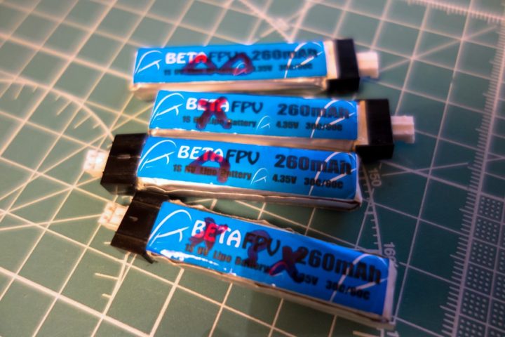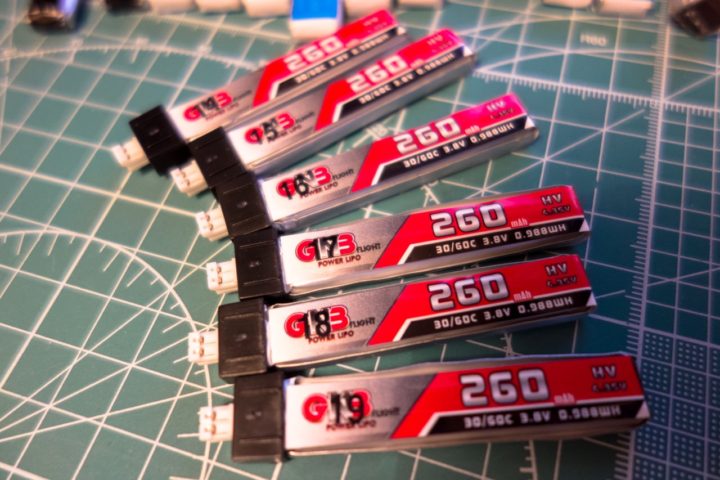 はじめて買ったHVバッテリー『BETAFPV 260mAh HVバッテリー』のその重量とパワーバランスが大変気に入り、それ以降は基本HV(ハイボルテージ)タイプのバッテリーを使うようになりました。